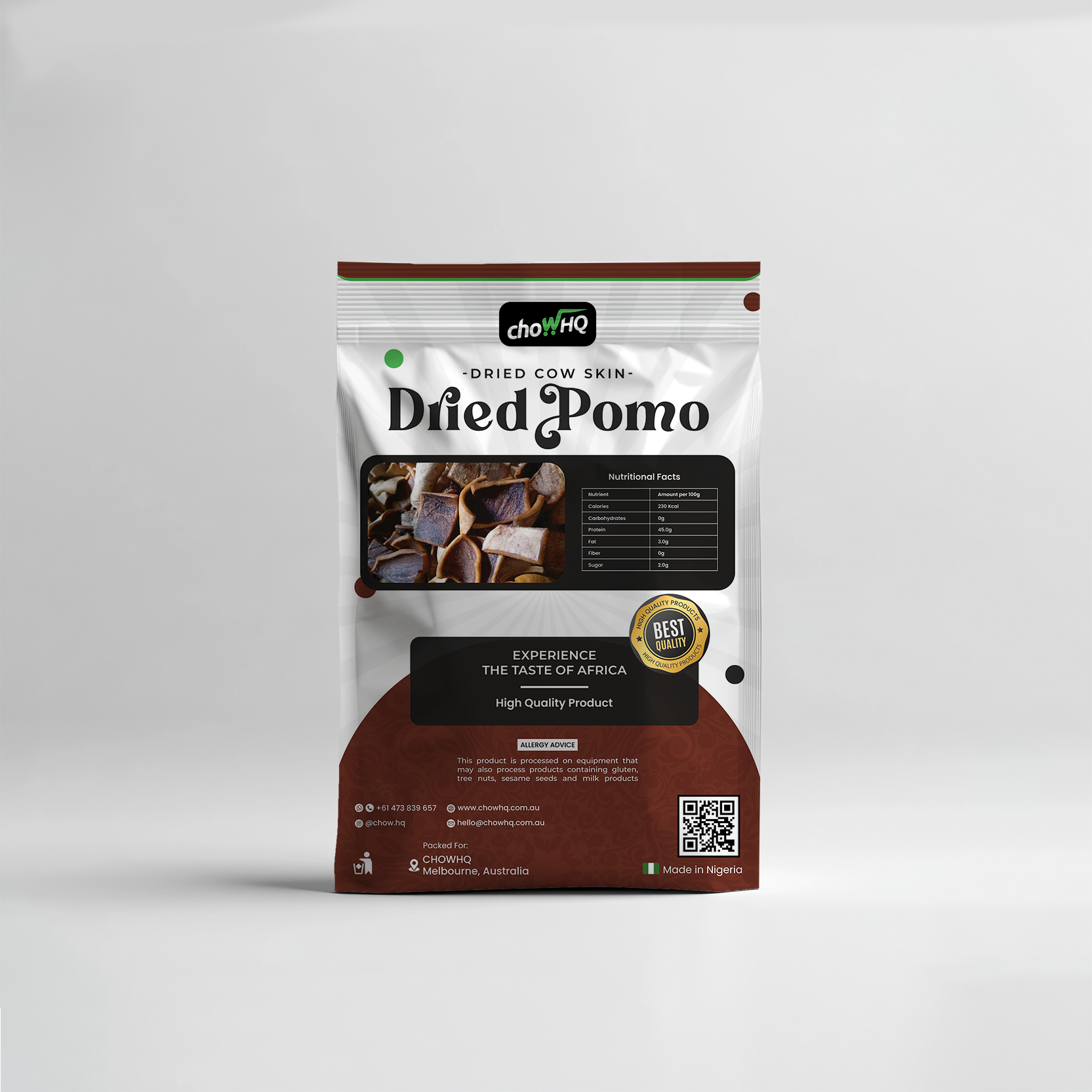 Premium dried cow skin prepared using traditional Nigerian methods. Its unique, smoky flavor and satisfying texture make it perfect for adding authentic taste to your soups, stews, or as a hearty snack. Simply soak, rinse, and cook for a delicious culinary experience.